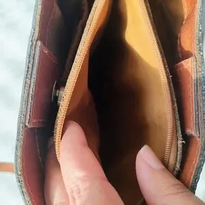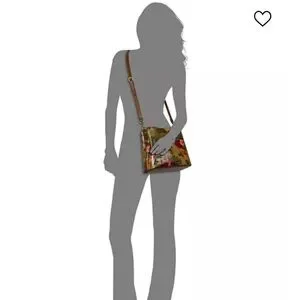 This elegant women's bag features a vibrant floral design with a tan leather strap, perfect for adding a touch of color to any outfit.