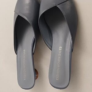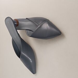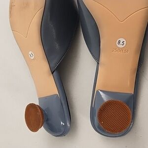 Light Denim Blue Low Kitten Heel Mule Shoe Pointed Toe 8.5 Runs 1/2 Size Small Fauz Leather Comfy