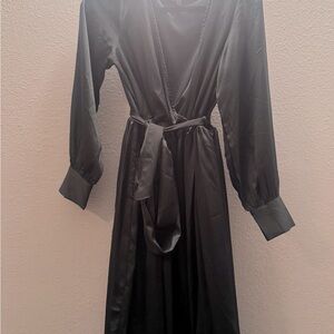 Add this gorgeous piece to your collection today! It has long sleeves with button details, along with a tie around the waist and a slit.