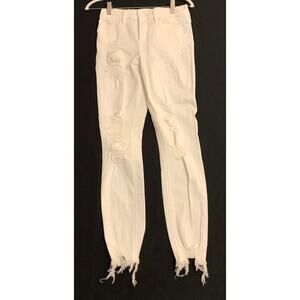 Express Womens Distressed White Skinny Jeans Stretch Mid Rise Ankle Y2K Size 0