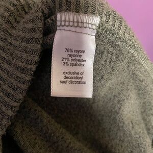 Olive green long sleeve tee with beautiful design on the sleeves. Hoodie is soft but also light weight like a tshirt. Curved hem.