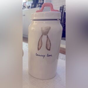Rae Dunn Dark Brown Bunny Love Dimply Canister NEW. From a Smoke and Pet free home.With Rae Dunn pottery, slight imperfections are part of its uniqueness and design.