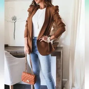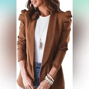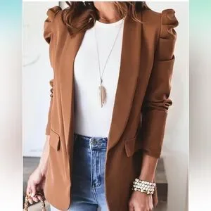Women's lightweight Puff Sleeve Blazer Jacket with Pockets