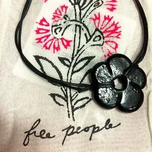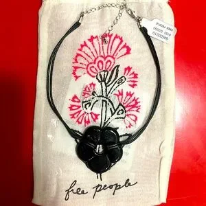brand new with tag and original pouch Free People Black Glass Flower Choker Necklace. Unique statement chocker, smooth glass flower pendant with double-strand waxed cord, adjustable clasp closure with extended chain. Such a bold jewelry piece that is stylish elegant and versatile 🖤 Comes with pouch as pictured.