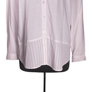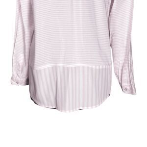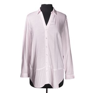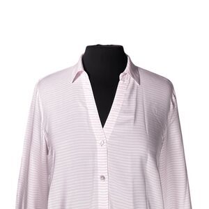 J. Jill Women's Shirt Button Up Pink White Striped V-Neck Blouse Tunic Top Small