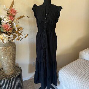 SOLDBlack Milkmaid Ruffle Dress Full Length Buttons Embroidered Polka Dots