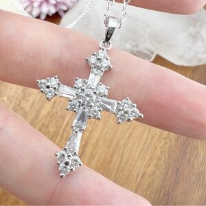 Jewelry Lot Solid Sterling Silver 925 VINTAGE Cross Pendant 18” Necklace and 925 Sterling Silver Filled 925 Vintage Style Utah Tiffany Stone Opalized Fluorite Pendant, 4mm 16-18” Labradorite Gemstone Necklace, and 925 earrings. Good Condition. No cracks or chips.