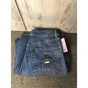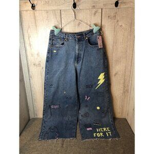 Womens Wild Fable Highest Rise Wide Leg Ankle Graffiti Denim Blue Jeans Size 8