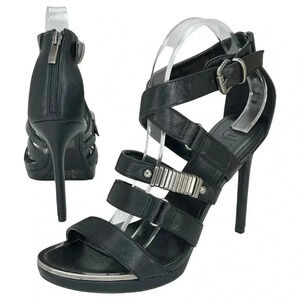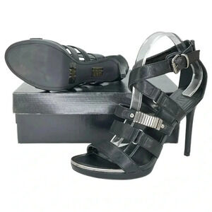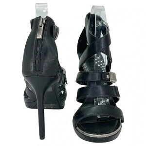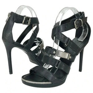 DKNY Deb Black Strappy Faux Leather Womens Heels Size 10M