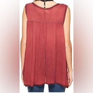 Soft and flow-y! Very big and loose! Clasps unbutton all the way. Replacement pieces included. Color is Wine