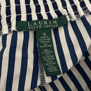 Lauren Ralph Lauren Pull On Ankle Pants Sz XL Navy Blue White Stripe Drawstring