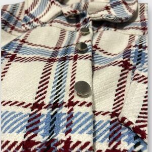 • Color: Cream base with blue & burgundy plaid