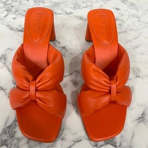 Schutz Fairy High Leather Mid Sandals in Flame Orange Block Heel EVEREVE Size 7