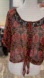 Chic and stylish Band Of Gypsies shear floral top in black with reds, pinks and more beautiful colors. Button up & ties in front, sits off shoulders. Perfect for any occasion.