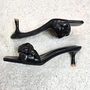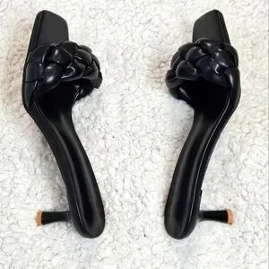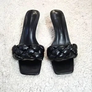 Sleek Black Mules with Braided Strap and Square Toe Size US 8 UK 39