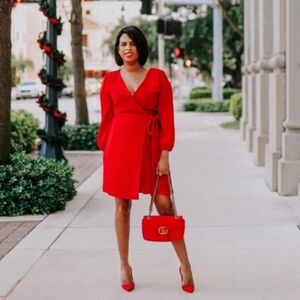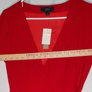 J. Crew Red Wrap Dress 0 Tie Waist Vneck Elbow Bishop Sleeve Classic Feminine