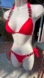 Stylish red bikini with eye-catching jewel accents. Perfect for a bold beach look.