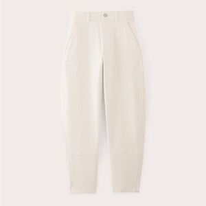 Slim fit through hips. Relaxed barrel leg. Tapered and cropped at ankle.