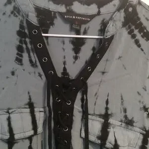 Rock & Republic Long Sleeve 100% Rayon Top. Lace up chest. Size Small