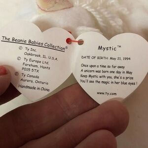 Mystic has a few tag "errors", but unlike many sellers, I won't pretend that they add a massive amount of value. Many of the so called rare errors are essentially worthless because they were all done in such mass quantities. In fact many of the "errors" that sellers claim make their beanie rare and valuable, aren't actually errors at ALL. But Mystic IS certainly still a sought after beanie, and a collectible that should be in any beanie baby collection. There are 4 MYSTIC beanie babies, find all four versions to complete your Mystic set!