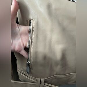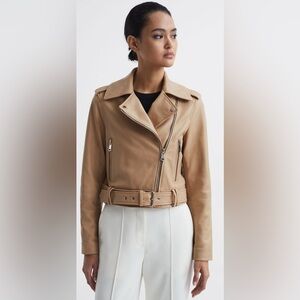 New REISS Tyler Leather Biker Jacket in Neutral Size 6