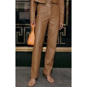 Abercrombie & Fitch The 90s Straight Ultra High Rise Faux Leather Pants Brown 6S