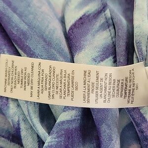v neck long sleeve asymmetrical tunic cover up sz xl chicos sz 3. semi sheer blue floral watercolor design. great pre-owned condition. flat across bust is approx 23", length is approx 27" in front and approx 36" in back.
