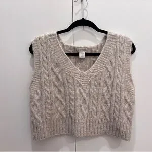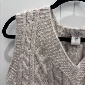 Ruby Moon Tan V-Neck Cable Knit Sweater Vest
