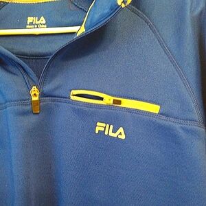 Mens Large Fila activewear Shirt Blue and Gray with zip neck and pocket Pre Loved Good Condition