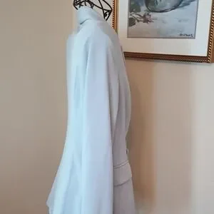 This blazer from House of Harlow 1960 features a soft pastel blue color and wide lapels that create a deep V-neckline. The relaxed fit and full-length sleeves add to its stylish appeal, making it a versatile addition to your wardrobe. Nwot sz M