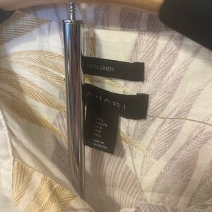 Tahari Shirt Women Large Off White Palm Linen Lagenlook Coastal Granny Cruise Camp