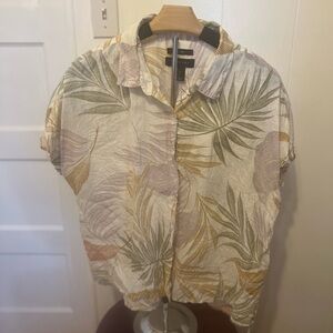 Tahari Shirt Women Large Off White Palm Linen Lagenlook Coastal Granny Cruise