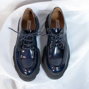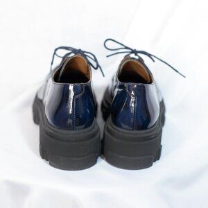 Steve Madden Womens Chunky Platform Patent Genuine Leather Shoes Lace Up Oxford Loafer Helga Blue Size 9M