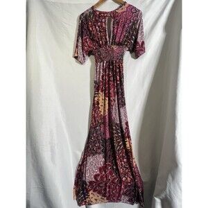The 5th&Love Paisley Maxi Dress is a stylish and colorful long dress designed for women. The dress features a paisley pattern in a multicolor scheme, making it a vibrant and eye-catching piece. It is a size small, suitable for regular sizing, and falls into the maxi dress category, known for its long length that typically reaches the ankles or floor. Perfect for a variety of occasions, this dress combines a trendy style with a comfortable fit, ideal for any woman looking to make a statement in their wardrobe.
