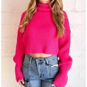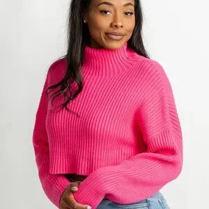 EUC. Bright Barbie-inspired pink in a cozy sweater. Ribbed Cropped Turtleneck.