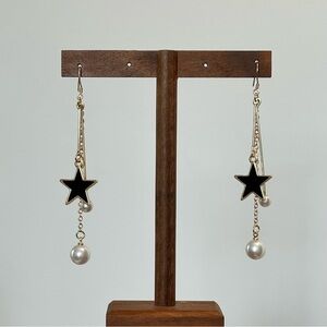 3/$20 Gold Chain Black Stars Pearls Drops Long Dangling Earrings