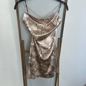 New never worn !!!🤎🤍SER.O.YA. This silk mini dress features an abstract palm print with spaghetti straps that criss cross at back. Wear it on your next tropical trip. Shown here in Brown Palm.