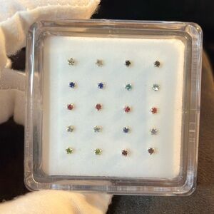 925 Sterling silver 20 gage crystal CZ Nose Rings set of 20. Nose bone closure. Brand New in Box.