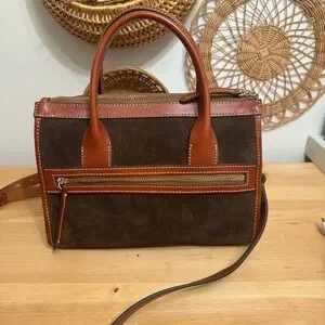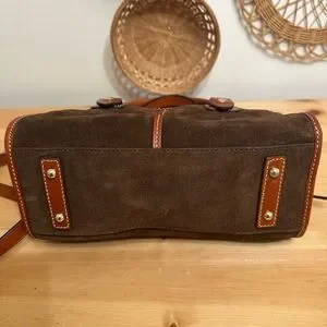This small satchel, made of soft smooth suede leather, features many pockets and organized spaces, so it packs a big punch.