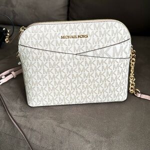 MICHAEL KORS Pink Blush & Nude Monogram Cross Body Bag /Purse. NEW