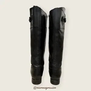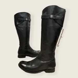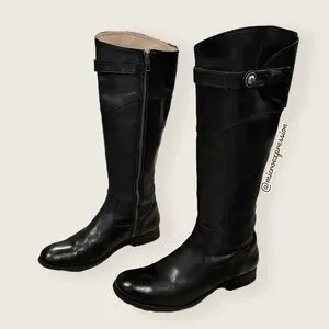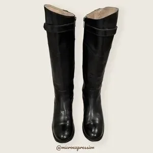 $438 Frye Molly Button Black Leather Equestrian Tall Knee High Zip Up WinterBoot