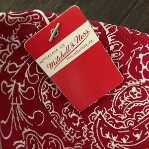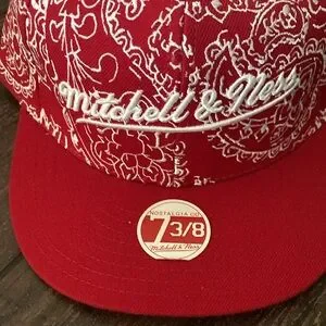 Stylish and vibrant, this Mitchell & Ness cap is perfect. The bold red color and intricate design make it a standout accessory.