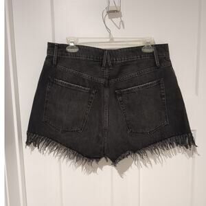 Good American Good 90s High Rise Black Distressed Frayed denim shorts size 10/30