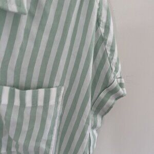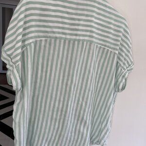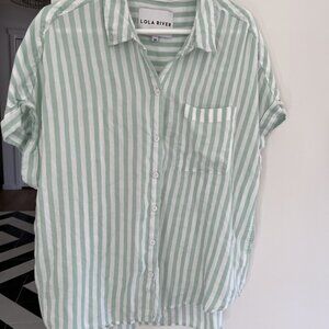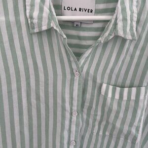 Lola River Women XL Cotton-like Shirt, Blouse, Button, Green Stripes Casual Boxy