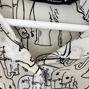 Zara Women XL Blouse Shirt Elephant Print Buttons Flowy Side Slits NWOT