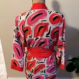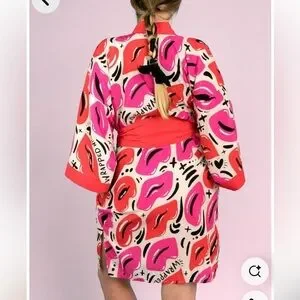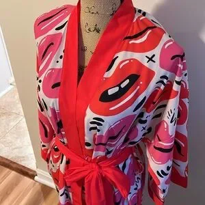 Nuno Jason Naylor Wrapped with Love Luscious Lips Kimono Robe Satin