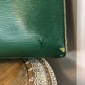 Good condition with a few call outs. Back pocket and interior zip pocket are peeling. One corner has a small hole. There are signs of wear including corner wear but overall it is a beautiful briefcase and still useable as is! Authentic. Purchased from bagriculture.
