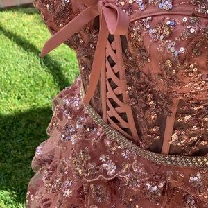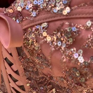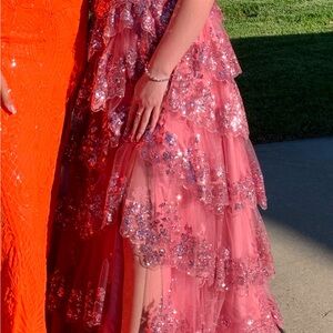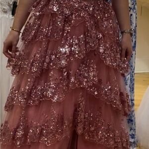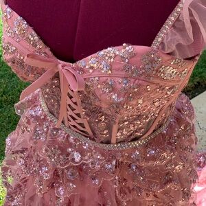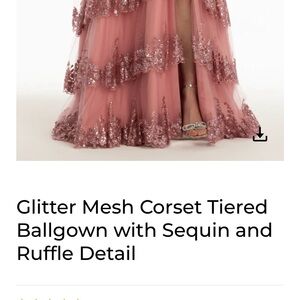 Glitter Mesh Corset Tiered Ballgown with Sequin and Ruffle Detail. Prom dress.