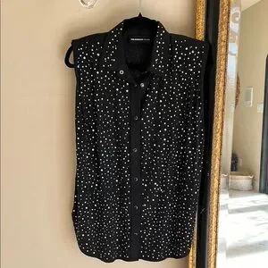Stylish sleeveless shirt by The Kooples. Features a black base with silver Rhinestones. Perfect for a chic cowboy -boho look