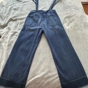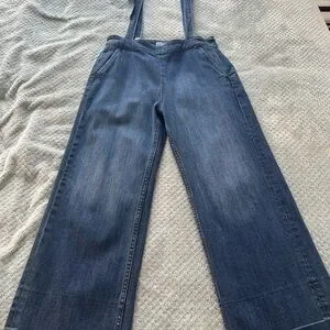 Denim Overalls in a feminine, flirty, classy style. Worn twice and only dry cleaned to keep perfect shape. Very easy to adjust length of straps.